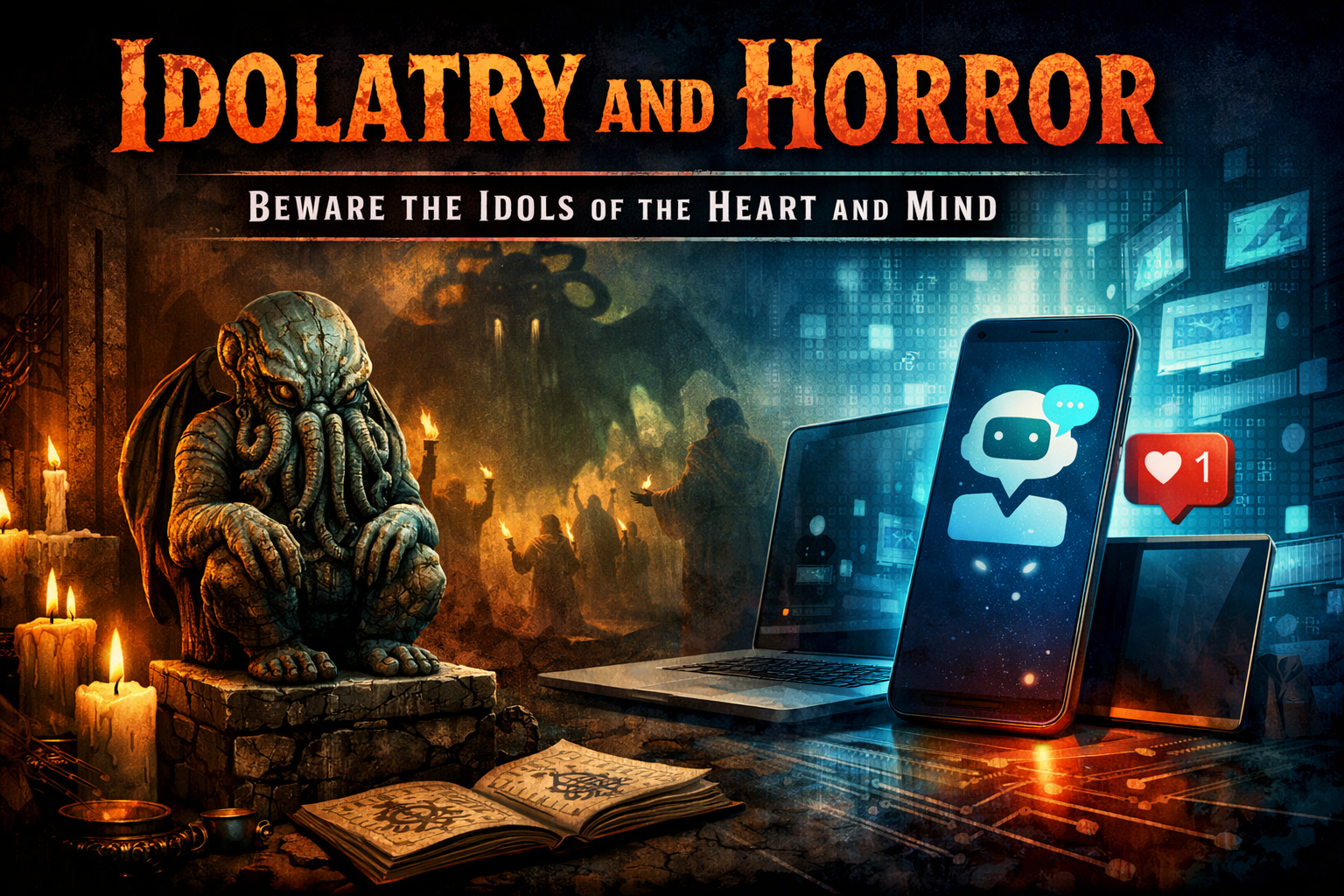 The little idol in The Call of Cthulhu is more accurate than we may think at first. Idolatry makes man foolish, stupid, and worthless (Jeremiah 10:8; Romans 1:21–22). As the Bible says more than once "those who worship them will become like them" (Psalm 115:8; Psalm 135:18). It may be a slow trip; it may be a subtle decay of mental and spiritual capacity. The Apostle John thought this theme was so important that he ended his first epistle with a simple sentiment that I will close by quoting: "Little children, keep yourselves from idols." (1 John 5:21)